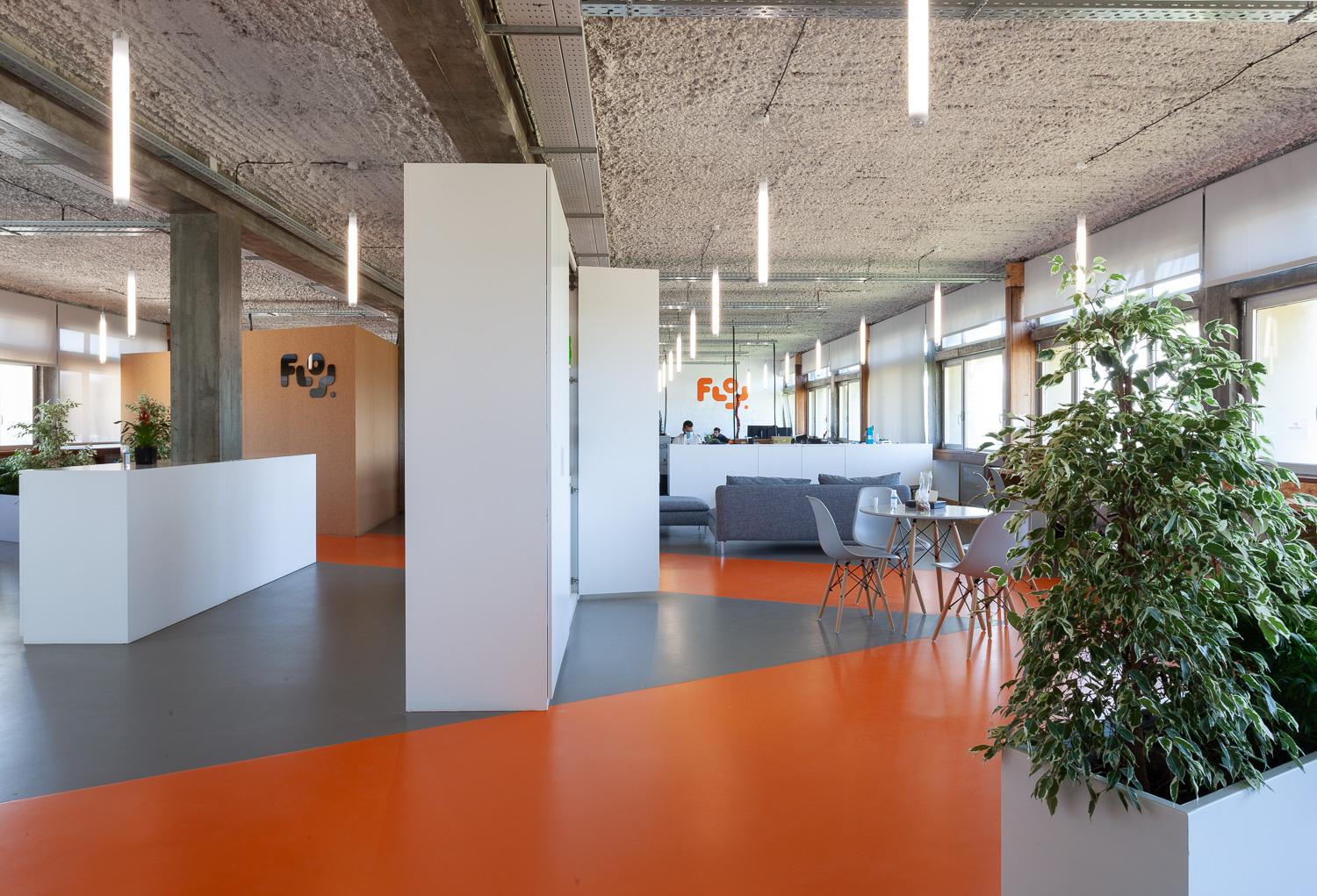 The concept allows the ideals that govern the company and, therefore, is based on mobility and self-sustainability. The organisation of the space allows the open space distribution to growth and redesign itself, given the growth factor of an technological enterprise as FLOW.